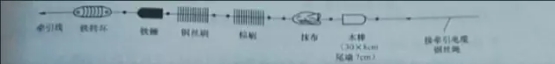 穿管器或者竹片從管道內(nèi)穿出時(shí),必須在末端綁上4.0鐵線1根,帶入管孔作為引線。在施工中,上一個(gè)施工人必須為下一個(gè)施工人預(yù)留引線。引線末端連接一套工具,包括鐵轉(zhuǎn)環(huán)、鐵錘、鋼絲刷、抹布、木棒等�?梢杂行宄芸變�(nèi)淤泥和雜物同時(shí)清除積水。