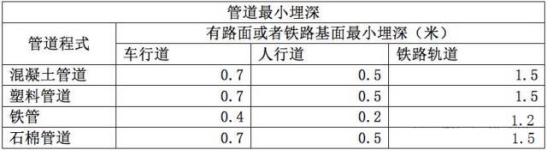管道地下埋深要符合管道最小埋深的要求。人手孔的深度要根據(jù)兩側(cè)管道進(jìn)入人孔內(nèi)的高度確定。進(jìn)入人孔后兩側(cè)口腔相對高度要一致或接近,高度差不大于0.5米。