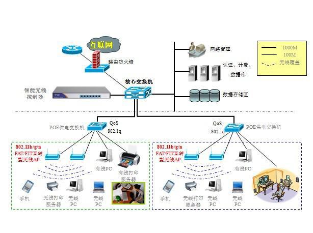 POE交換機:給AP同時提供電力及數(shù)據(jù)傳輸,一般接駁在現(xiàn)有交換機下層即可,使用POE交換機之后可方便用戶進行網(wǎng)絡部署,無需砸墻布線即可實現(xiàn)無線覆蓋。