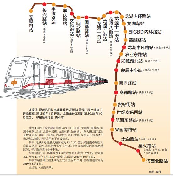 鄭州地鐵4號線工程下穿龍湖段已于2015年10月31日開工,總體工程計劃于2017年3月10日開工建設(shè),預(yù)計2020年10月1日前開通運營。